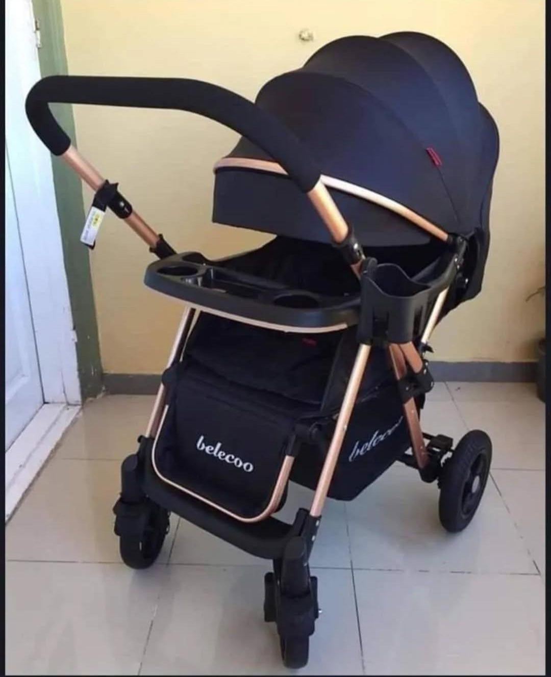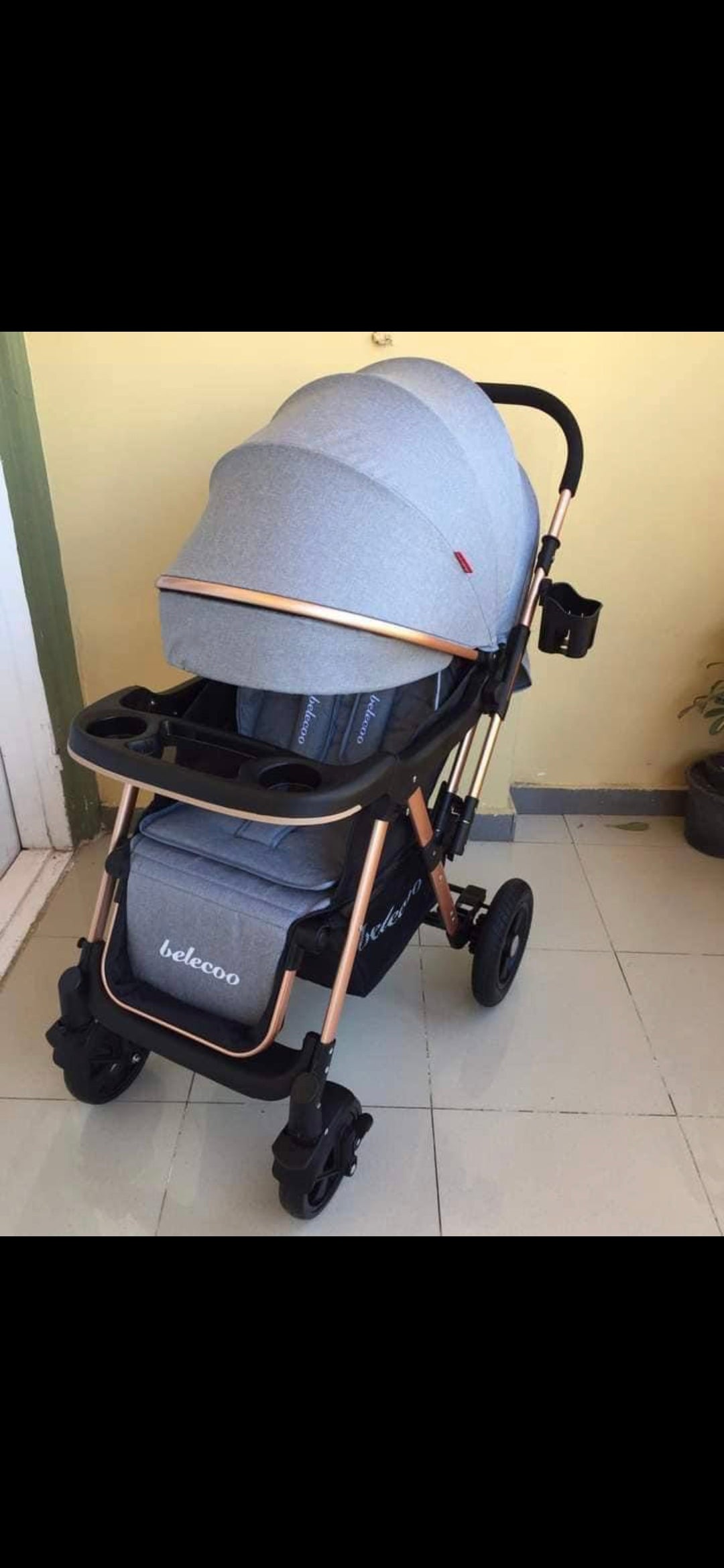 _ مزودة بطاولة طعام و حامل اكواب لوضع زجاجة الماء او بيبرونة الطفل.
