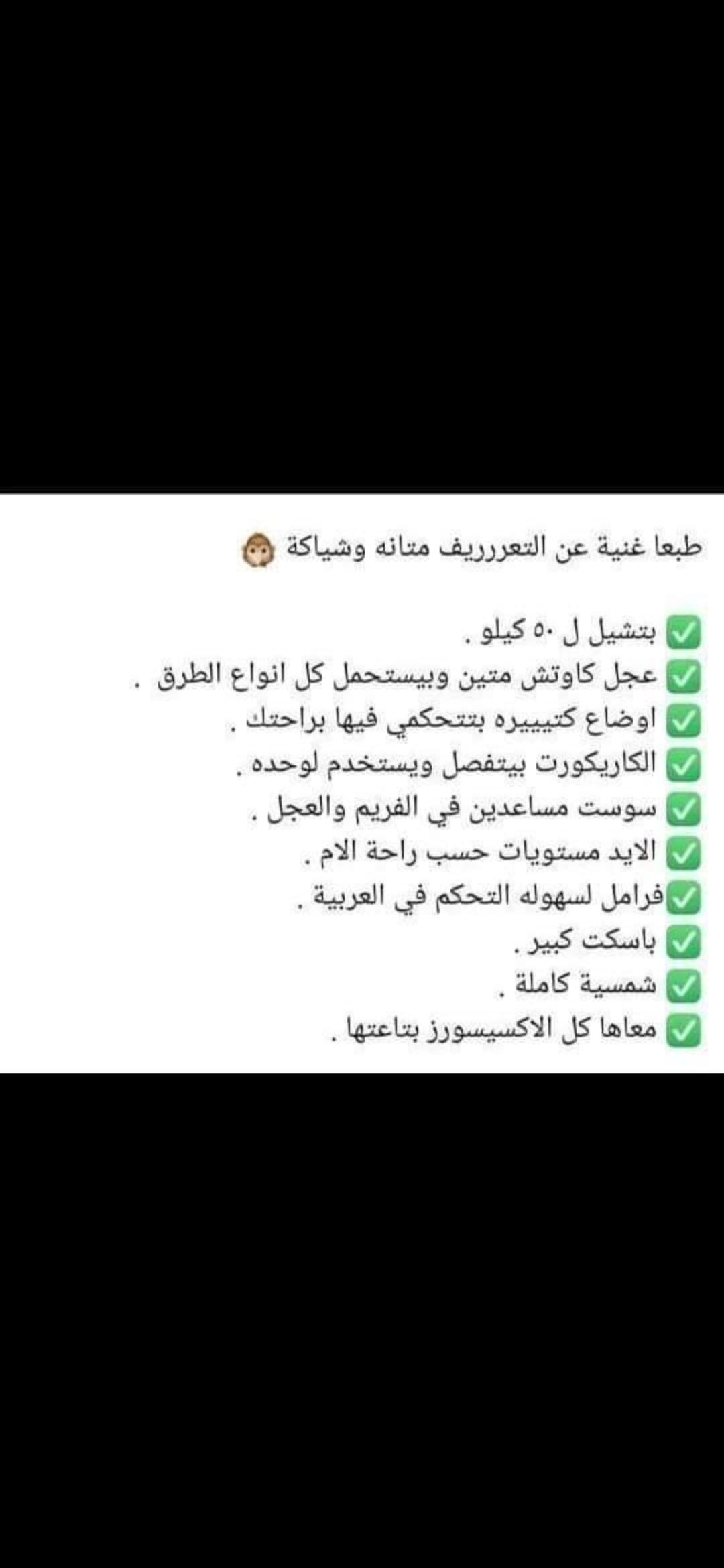 • مقبض قابل للتعديل: يتيح تعديل ارتفاع المقبض لراحة الوالدين أثناء الدفع.