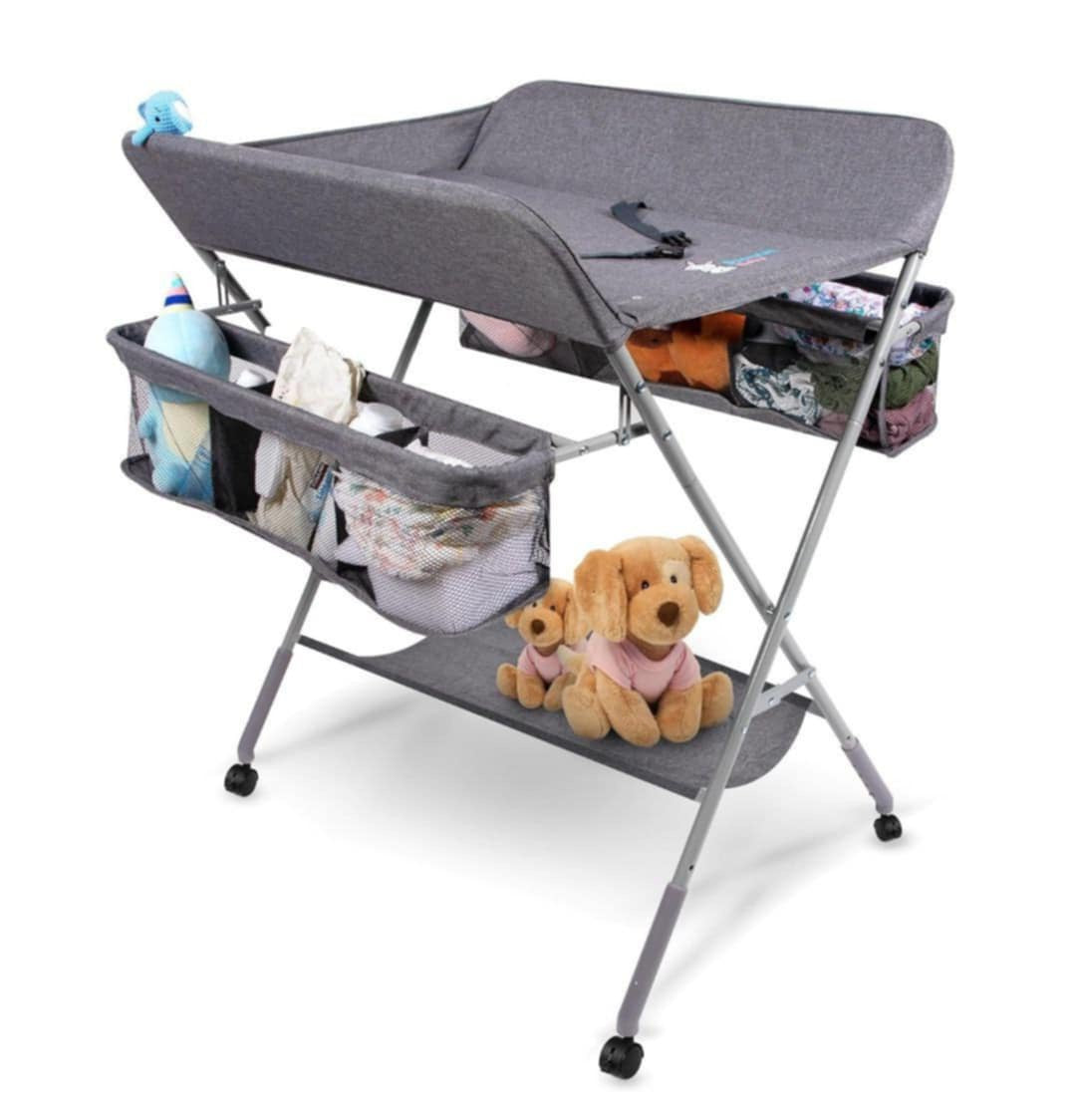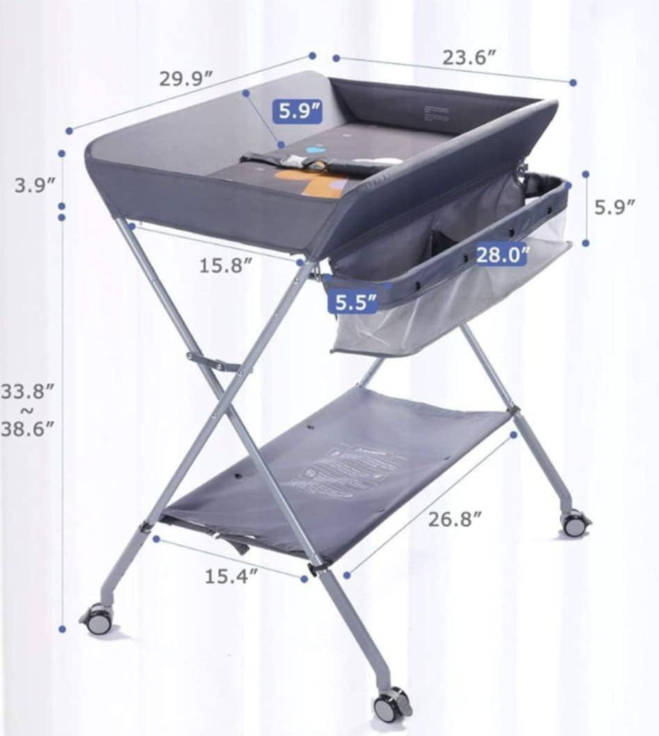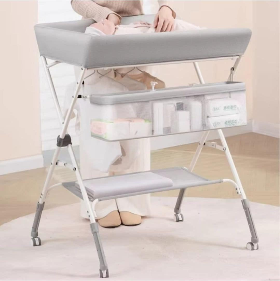 مناسبة للاستخدام من جميع أفراد العائلة بمختلف الأطوال طاولة أطفال مزودة باربع بعجلات سهلة الحركة، يمكنك تعليق ملابس الطفل وتخزين الحفاضات وغيرها من الأشياء