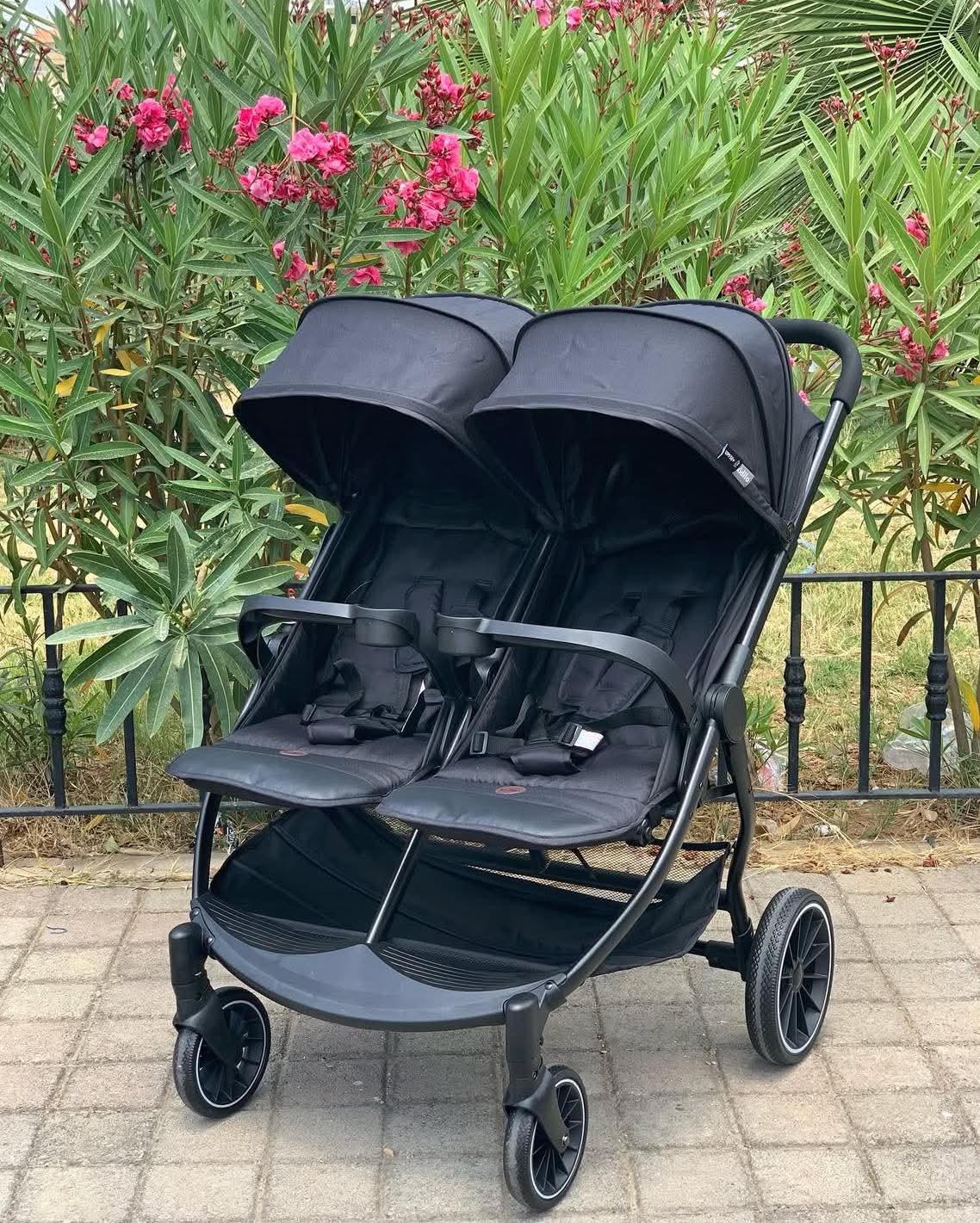 من اجمل وامتن الاسترولر التوأم قفل وفتح اتوماتيك شاسيه متين عجل كاوتش خامة الفرش وتبطين مريح جدا